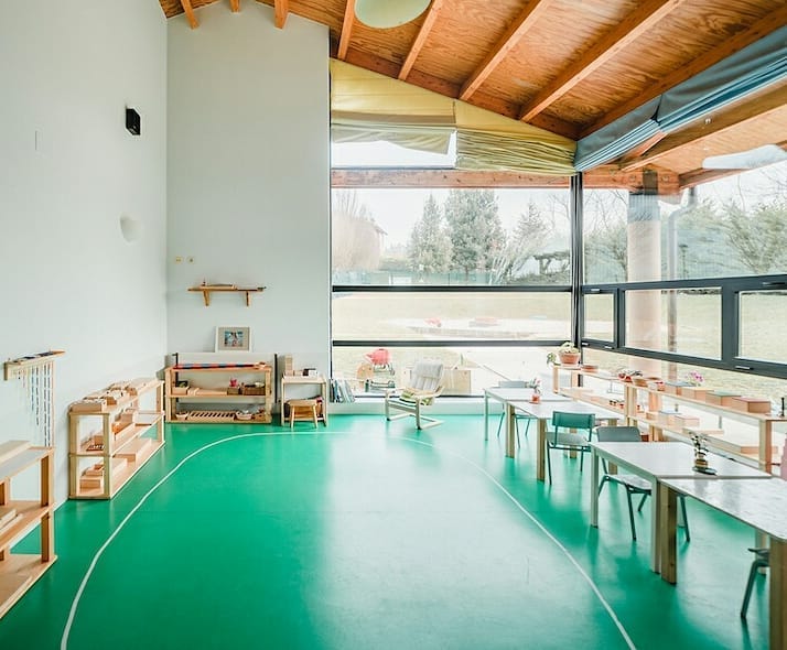 El espacio está adaptado para posibilitar el desarrollo de habilidades motoras y sociales con independencia y autoestima. Actualmente, este espacio tiene capacidad para 12 niños/as acompañados por dos Guías Montessori.